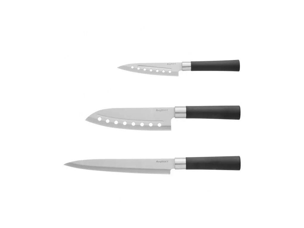 Táto 3-dielna súprava nožov s vysoko kvalitným rezbárskym nožom a dvoma nožmi Santoku, navrhnutá pre výkon a odolnosť, je vynikajúcou voľbou pre každého, kto oceňuje efektivitu v kuchyni. Ostrá čepeľ nožov z nehrdzavejúcej ocele vyrezáva, krája a reže všetky druhy ingrediencií ako vo sne, zatiaľ čo robustná rukoväť z PP ponúka dobré uchopenie pre optimálnu kontrolu. Pridajte k tomu perforácie v čepeli nožov Santoku, ktoré slúžia ako nepriľnavý povlak, čím zaisťujú, že sa jedlo neprilepí na nôž, a máte sadu nožov, na ktoré sa môžete spoľahnúť, že vždy zarežete. plynulý, plynulý pohyb.