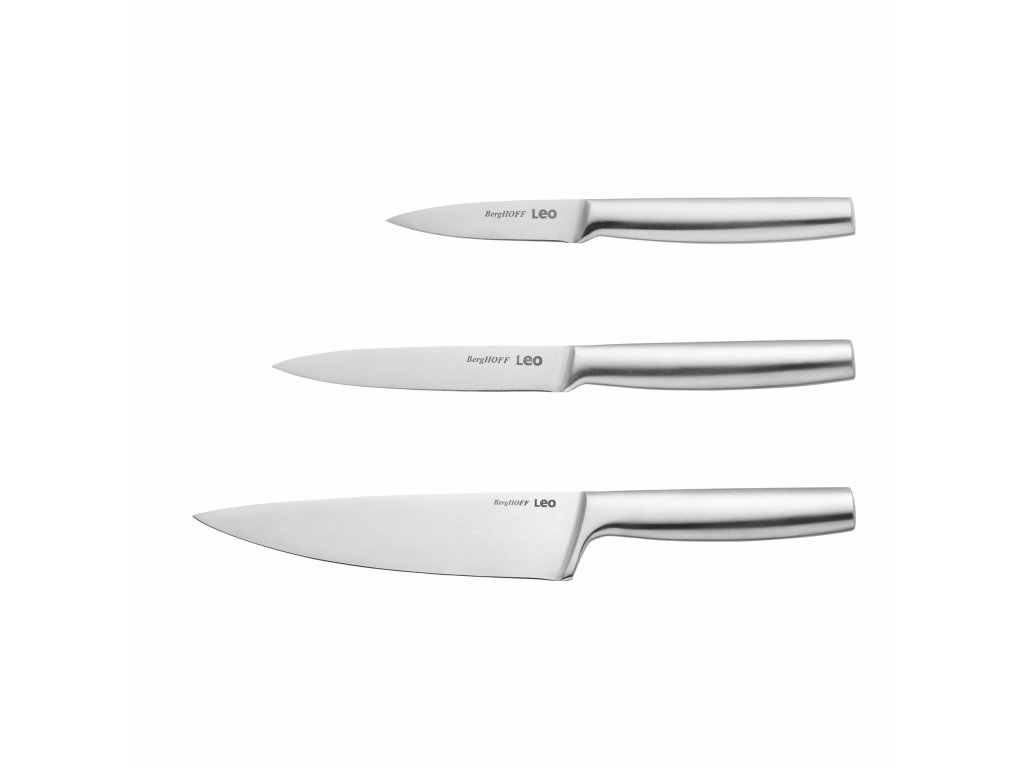 Táto 3-dielna sada obsahuje krájací nôž, kuchynský nôž a kuchársky nôž, perfektná súprava štartovacích nožov do vašej kuchyne! Všestranný kuchársky nôž je na krájanie a krájanie na kocky, praktický nôž čisto reże potraviny s tvrdým vonkajším povrchom a mäkkým vnútro m a krájací nôž si poradí so všetkými vašimi drobnými prácami pri krájaní.