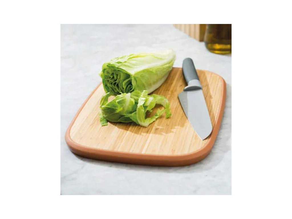 Doska na krájanie je jednou z najdôležitějších pomôcnikov v kuchyni. Je z bambusového dreva , ktoré veĺmi rýchlo rastie a preto sa radí medzi obnoviteľné zdroje. Zároveň je perfektn&ou náhradou za drevo a je láskavejší k nožom, pretože netupia ich čepele. Bambus je prirodzene antibakteriálny a absorbuje veĺmi malú vlhkosť, takže je hygienickejší ako niektoré iné druhy dreva. Povrch dosky je ošetrený olejom a okraj dosky je pogumovaný, aby sa pri práci nešmýkala a vy ste mohli na nej bezpečne pracovať.