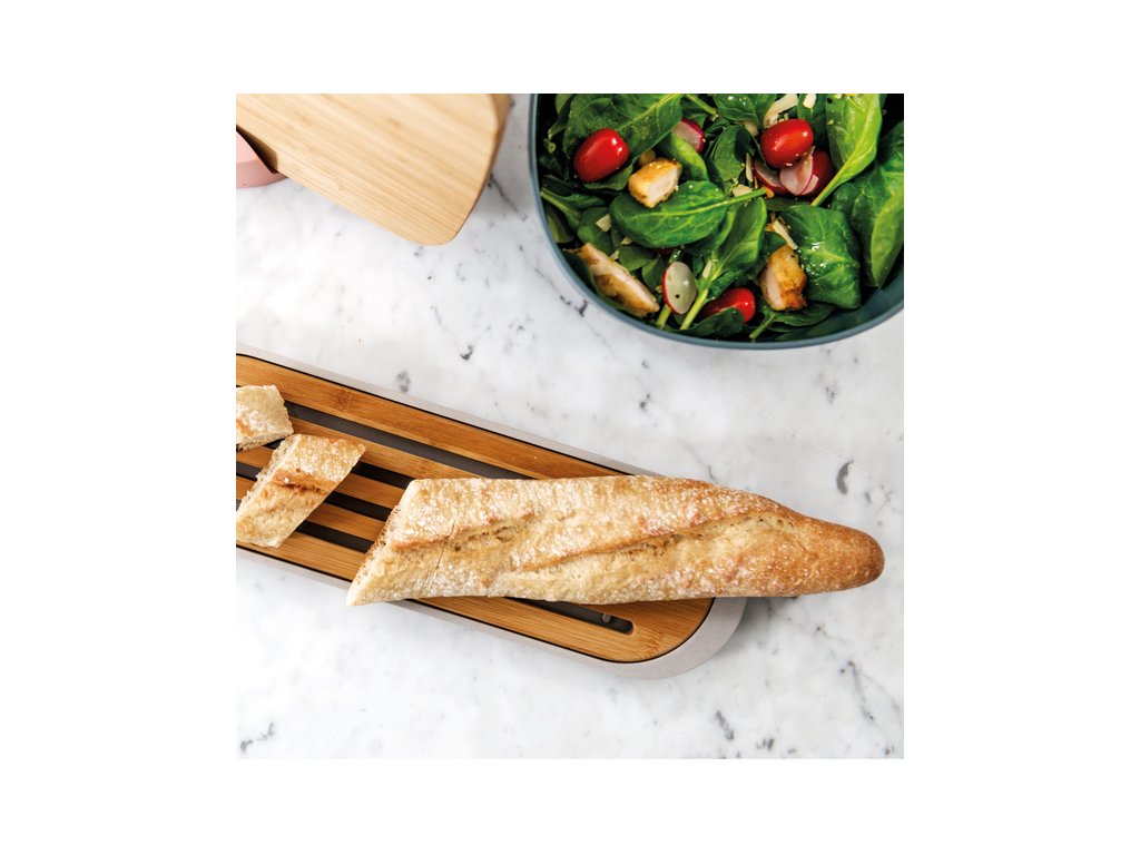 Bambusová doska na krájanie, ktorá je určená na chleba, pečivo a najmä na dlhé bagety. Skladá sa z podnosu na omrvinky a dosky s otvormi. Týmto setom udržíte vašu domácnosů v poriadku a ani mravček si nedovolí vstúpi&ť do vašej domácnosů.