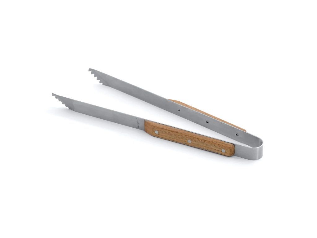 Kliešte majú pevný úchop, ktorý zabezpečuje presné otáčanie, servírovanie a manipuláciu s mäsom, zeleninou či grilovanými prílohami. Ergonomická drevená rukoväť je pohodlná na držanie, dobre izoluje teplo a dodáva kliešťam štýlový, prírodný vzhľad.