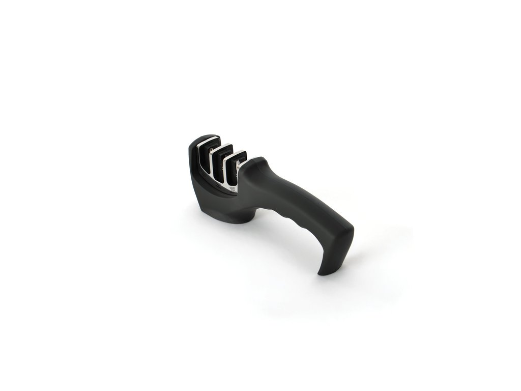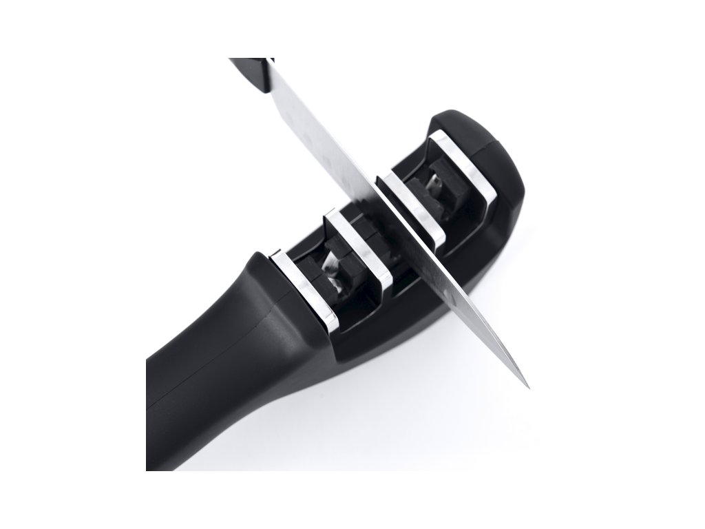 Tupé nože sú minulosťou! S touto šikovnou brúskou môžete kuchynské nože brúsiť v 3 jednoduchých fázach. Diamantový povrch pripravuje nôž na ostrenie, volfrámová oceľ obnoví reznú hranu do tvaru V a keramický kameň čepeľ vyleští a odstráni prípadné nerovnosti. Pohodlná rukoväť brúsky s protišmykovou základňou zaisťuje mimoriadnu stabilitu.