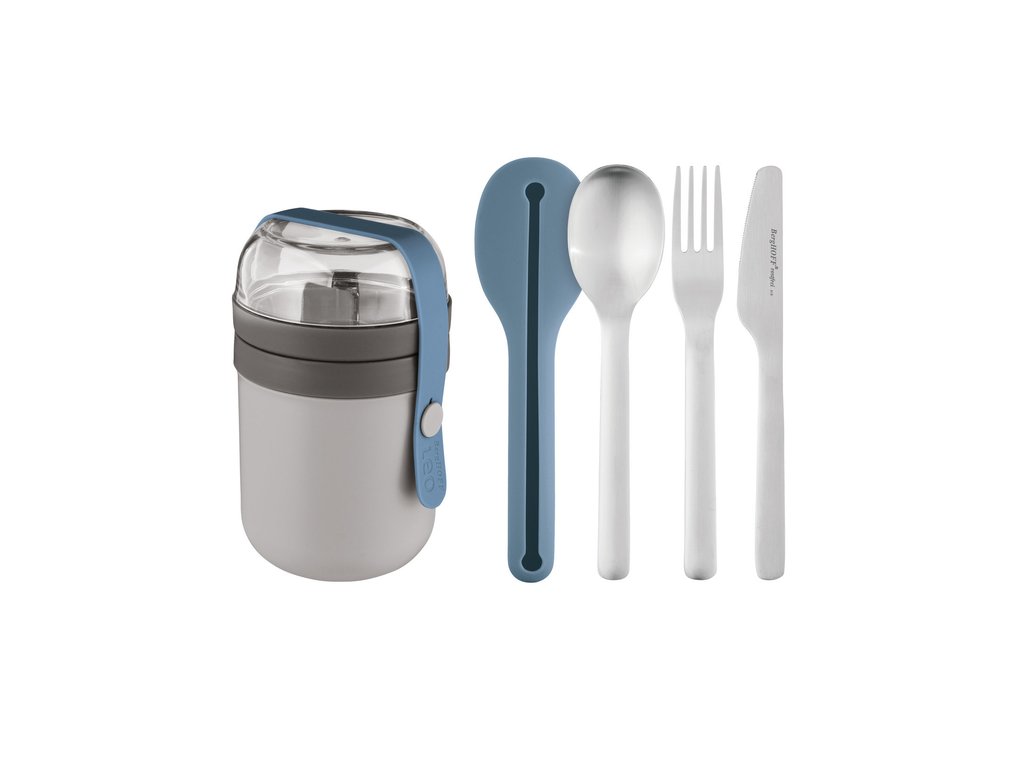 Vybavte sa na cesty touto praktickou a kvalitnou sadou. Obsahuje príbor (lyžicu, vidličku, nožík) so silikónovým puzdrom a šikovný obedár. Je ideálna na výlety, na služobné cesty a aj do práce, ak si radi pochutnávate jedlo zo svojej obľúbenej reštaurácie. Táto zladená sada je balená v peknej krabici.