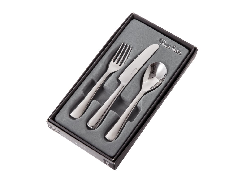 Pomôžte svojej ratolesti, aby sa naučila správne držať príbor a jesť ním. Detský príbor je menší oproti dospeláckej verzii a bezpečnejší pre vše dieťa. Je z najjemnejšej nehrdzavejúcej ocele, a preto umývanie pri vysokých stupňoch teploty je povolené. Je balený v peknej krabičke s detským motívom.
