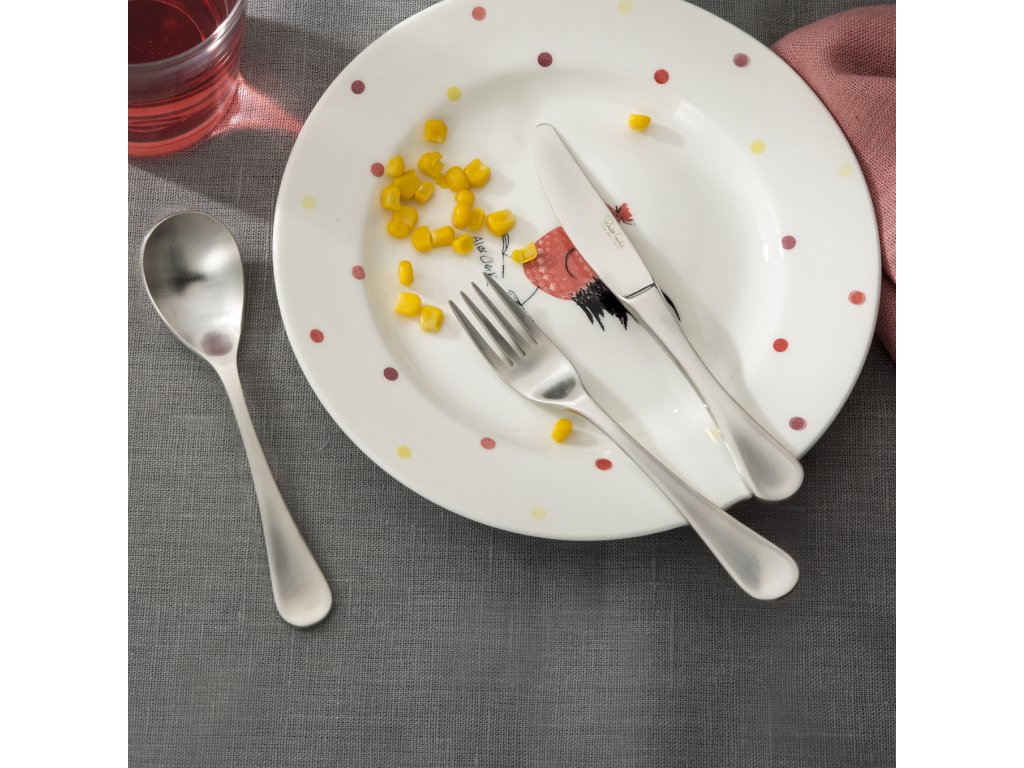 Pomôžte svojej ratolesti, aby sa naučila správne držať príbor a jesú ním. Detský príbor je menší oproti dospeláckej verzii a bezpečnejší pre vaše dieťa. Je z najjemnejšej nehrdzavejúcej ocele v matnom povrchovom opracovaní, a preto umývanie pri vysokých stupñoch teploty je povolené. Je balený v peknej krabičke s detským motívom.