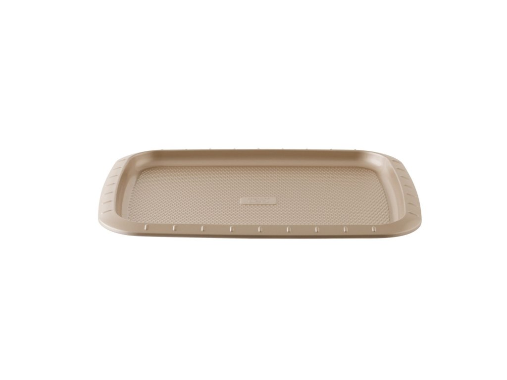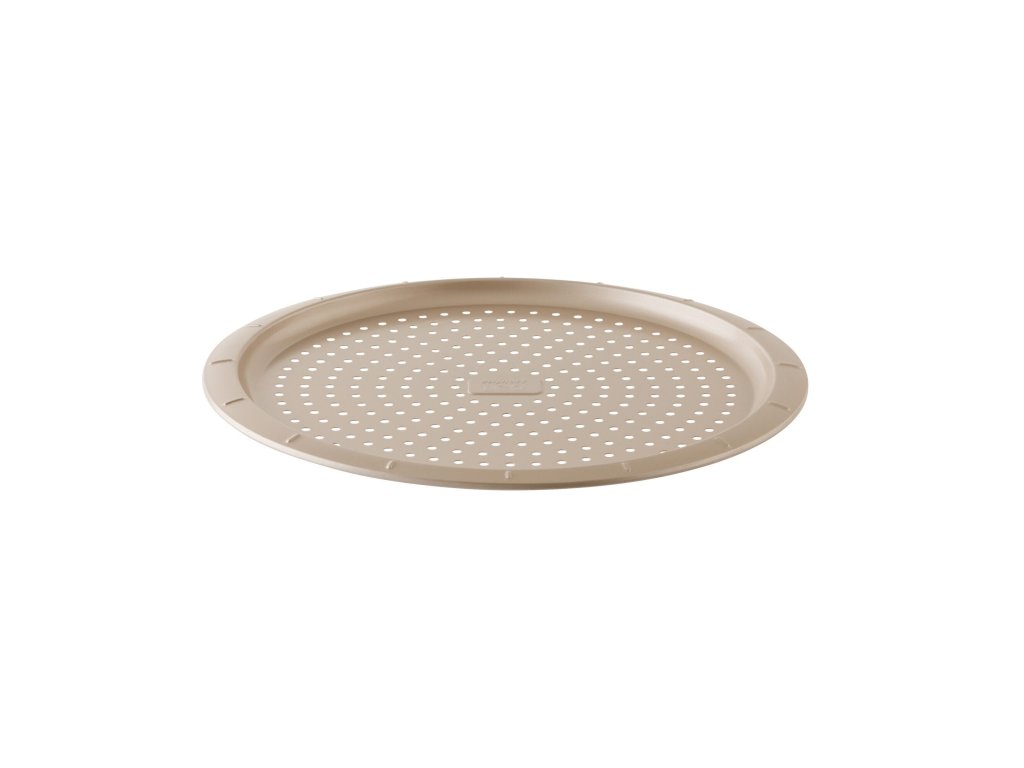 Pomocou tejto dierovanej formy na pizzu si ľahko pripravíte lahodnú domácu pizzu! Uhlíková oceľ poskytuje rovnomernú distribúciu tepla pre konzistentné pečenie, zatiaľ čo perforácie pomáhajú vytvárať dokonale ostrý povrch. Akonáhle je vaša pizza hotová, môžete ľahko robiť rovnomerné plátky pomocou integrovaných mriežok na okraji panvice.