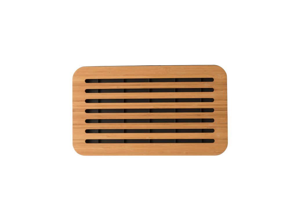 Praktická obojstranná doska na krájanie. Z jednej strany je doska bambusová a sú v nej otvory, ktoré slúžia na omrvinky z chleba a pečiva. Z druhej strany je doska polypropylénová a poslúži na krájanie mäsa, zeleniny a vašich prstov (rybích) :D