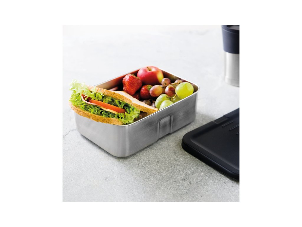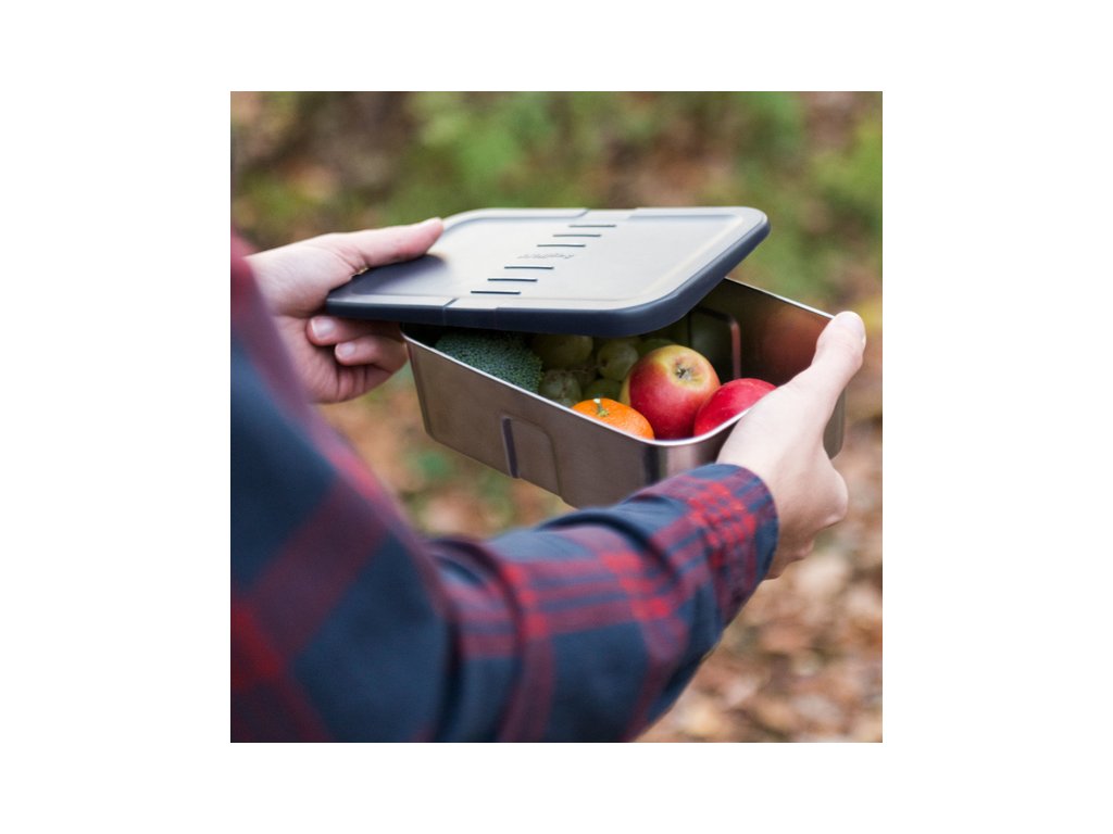 Odolný obedár z nerezovej ocele s plastovým vekom a silikónovým popruhom, ktorý sa postará o riadnejšie utesnenie dózy. Je ideálny na zabalenie desiaty do školy, obedu do práce alebo bežného jedla, ktoré si môžete vychutnať počas cesty na výlet alebo priamo na túre.