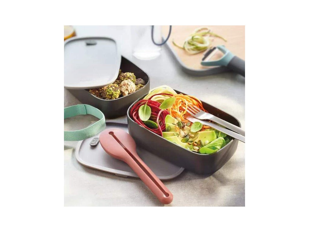 Dve dózy s viečkami, ktoré môžete spojiť elastickým popruhom. Využijete ich na prepravu akéhokoľvek jedla z reštaurácie, jedálne alebo vami pripraveného jedla. Dózy môžete dať do mikrovlnnej rúry aj s viečkom, ktoré má malý otvárateľný otvor. Výlety, pikniky alebo do práce, budú vždy vašimi vernými spoločníčkami. Už ich stačí len naplniť vašim obľúbeným jedlom.