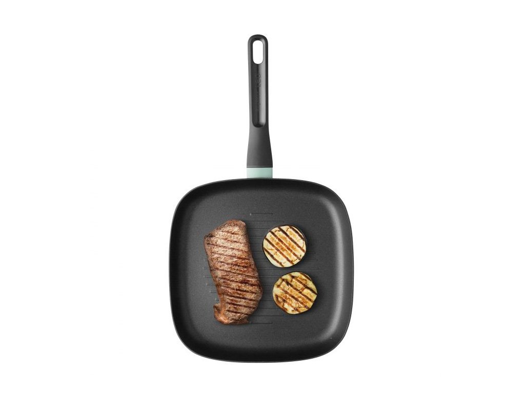 Grilujte si kura, steak alebo kúsok lososa bez námahy. S nepriľnavou vrstvou Fernogreen sa nemusíte báť, že sa vám mäso prilepí na grilovaciu panvicu. Naša vysokokvalitná nepriľnavá vrstva zaisťuje, že všetky zvyšky jedla, ktoré zostali po varení, sa dajú ľahko a bez námahy odstrániť. Hliník zaisťuje rýchle zahriatie s rovnomerným rozložením tepla, zatiaľ čo vyvýšené grilovacie línie poskytujú typické grilovacie stopy a umožňujú únik tuku a vlhkosti pre extra chrumkavý výsledok. Grilovacia panvica je vybavená držadlom pre pohodlné a bezpečné uchopenie. Zodpovedajúce farby tohto radu šalvie a bridlice vám umožňujú kombinovať rôzne panvice v oboch farbách.