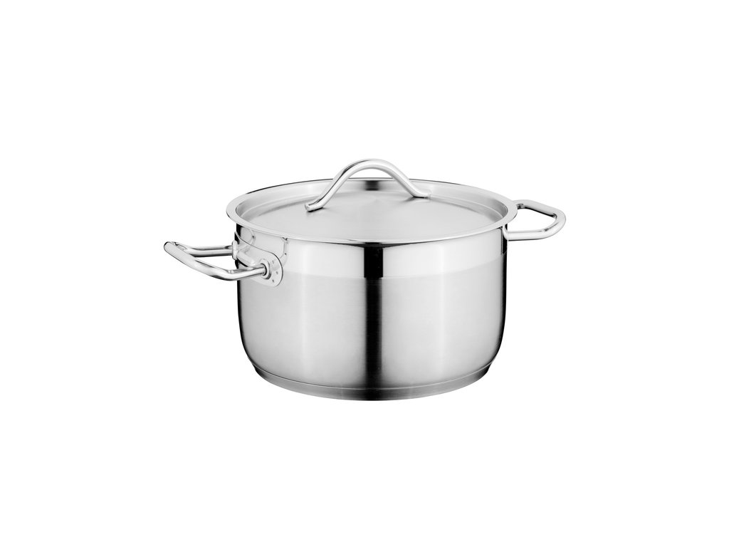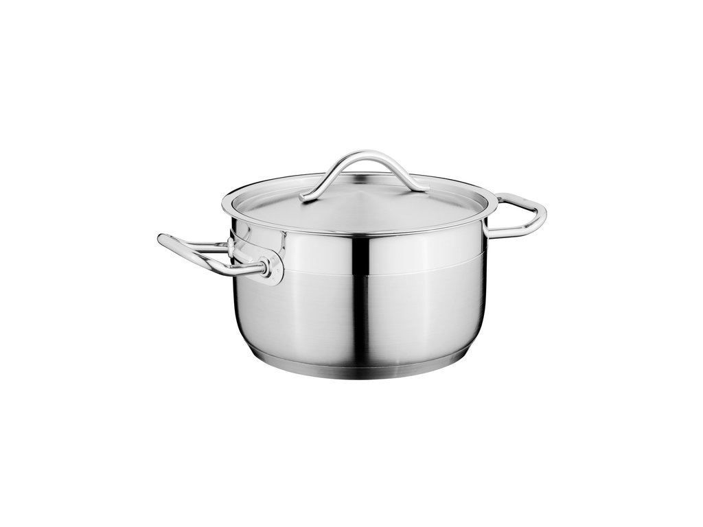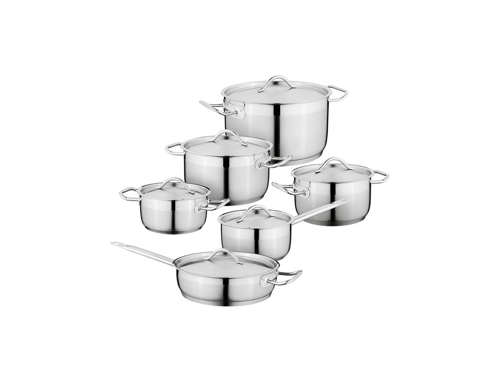 Dvanásťdielna sada hrncov s nerezovými pokrievkami Hotel line vyrobená z nerezovej ocele 18/10. Revolučné trojvrstvové dno zaručuje rýchle a rovnomerné rozloženie tepla a tým aj energeticky úsporné varenie. Rukoväte sú z ušľachtilej ocele a zaručujú pevné a bezpečné uchopenie. Hrnce možno používať na všetkých typoch sporákov vrátane indukčného. Tieto hrnce môžete umývať v umývačke riadu.