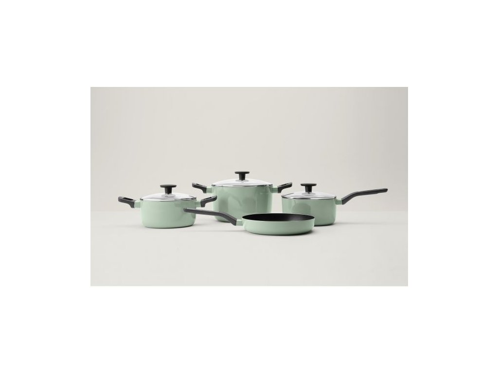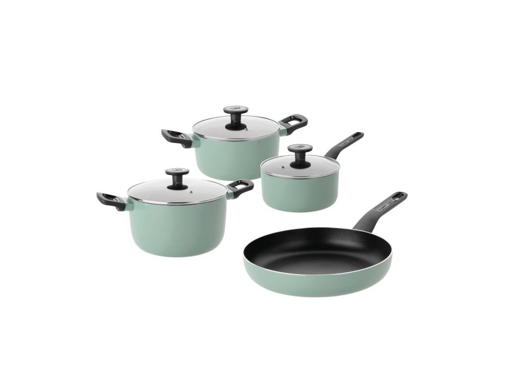 Rozžiarte svoju kuchyňu s touto všestrannou 7-dielnou sadou riadu. S prikrytou panvicou (18 cm), 2 zakrytými kastrólmi (20 a 24 cm) a panvicou (24 cm), všetko vyrobené z hliníka s farebným vonkajším povrchom, vám táto súprava umožňuje pripraviť širokú škálu receptov. Táto ľahká súprava riadu je vybavená vysoko kvalitným nepriľnavým povrchom pre ľahké uvoľňovanie a čistenie potravín, ale poskytuje vám pohodlie pri použití malého alebo žiadneho oleja. Sklenená pokrievka s nerezovou oceľou a odvzdušňovacím otvorom vám zaistí, že budete mať jedlo počas varenia stále pod kontrolou. Zodpovedajúce farby tohto radu šalvie a bridlice vám umožňujú kombinovať rôzne panvice v oboch farbách.