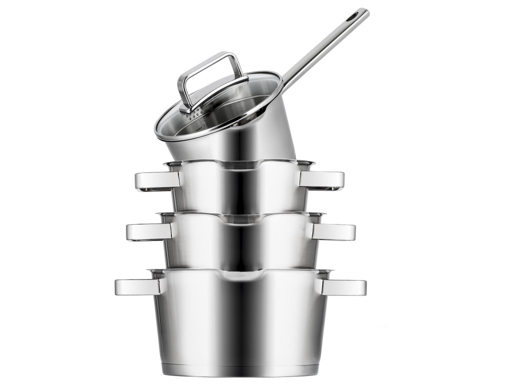 Hrnce Diamond majú niekoľko nadštandardných vlastností, ktoré vám pomôžu uľahčiť varenie a ušetriť na energiách. Prvá je sendvičová základňa, ktorá rovnomerne šíri teplo po celej ploche. Druhá je, že hrnce sú z nerezovej ocele a ich vnútro má merné rysky. Đalšími sú sklenené pokrievky, cez ktoré môžete sledovať prípravu jedla a zároveň nechať unikať paru cez otvory. Z hrncov môžete ľahko vyliať nadbytočnú vodu cez výlevkový otvor bez toho aby ste sa obarili.