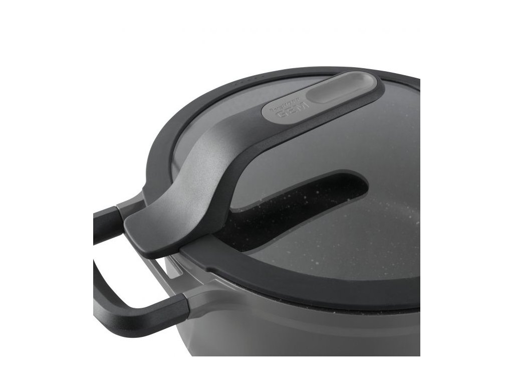 Pečenie kurčaťa na panvici, dusenie mäsa alebo dusenie zeleniny, čokoľvek vaše jedlo potrebuje, s touto zakrytou panvicou to ľahko zvládnete. Je vhodná pre akýkoľvek druh varnej dosky a dodáva sa s chladivou odnímateľnou rukoväťou, ktorú môžete odňať a umiestniť panvicu do rúry alebo ušetriť cenný úložný priestor vo vašej kuchynskej zásuvke. Ľahké hliníkové telo je vybavené viacvrstvovým antiadhéznym povlakom, ktorý zaisťuje ľahké uvoľnenie jedla a špeciálnymi nalievacími okrajmi pre nalievanie bez kvapkania. Na doplnenie je tu priehľadná sklenená pokrievka, ktorú možno umiestniť vertikálne na telo panvice, aby ste mali voľné ruky na miešanie a servírovanie, a má dve rôzne veľké oblasti na nalievanie pre ľahké cedenie rôznych ingrediencií.