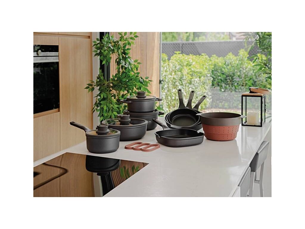 Keď uvažujete o tom, že si pripravíte chutné rizoto alebo si na večeru podusíte nejaké zemiaky, no nechcete potom tráviť veky upratovaním, táto panvica na restovanie je dokonalým partnerom. Jeho telo z liateho hliníka zaisťuje rýchlu a rovnomernú distribúciu tepla na akomkoľvek druhu varnej dosky vrátane indukcie a je pokryté vysoko kvalitným antiadhéznym povlakom, ktorý vám umožní nielen variť s minimálnym množstvom oleja, ale aj zjemniť panvicu. vánok na čistenie. Pridajte k tomu mäkkú rukoväť a priehľadnú sklenenú pokrievku, ktorá je vybavená odtokovým otvorom pre ľahké cedenie a funkciou odloženia lyžice, a máte riad, ktorý vám určite uľahčí život!