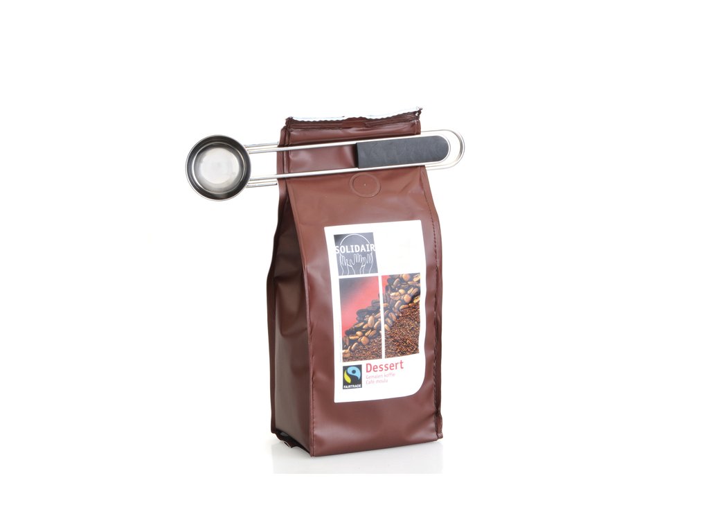 Vskutku skvelý vynález od značky BergHoff pre všetkých, ktorý si radi vypijú kvalitnú kávičku alebo čaj. Lyžica slúži ako odmerka na presné dávkovanie pomletej kávy či sypaného čaju a jej rúčka, ako šikovný štipec na obal vášho pripravovaného nápoja. Takto budete mať lyžicu vždy po ruke a zároveň dobre zatvorené vrecko.