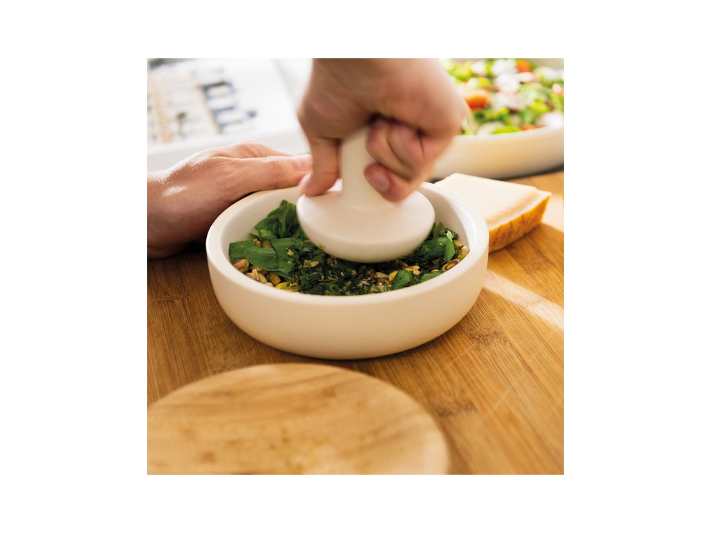 Možno pripomínajú pravek, no skutočný kuchár vie, že bez neho by nedosiahol tak výrazné chute a úžasnú arómu. Títo dvaja pomocníci vám na čerstvo rozdrvia koreniny či bylinky na domáce pesto alebo salsu. Majú veľmi pekný saténový povrch a elegantné tvary. Nemusíte sa báť dať mažiar priamo na stôl a nechať sa unášať tou skvelou vôňou a chuťou.