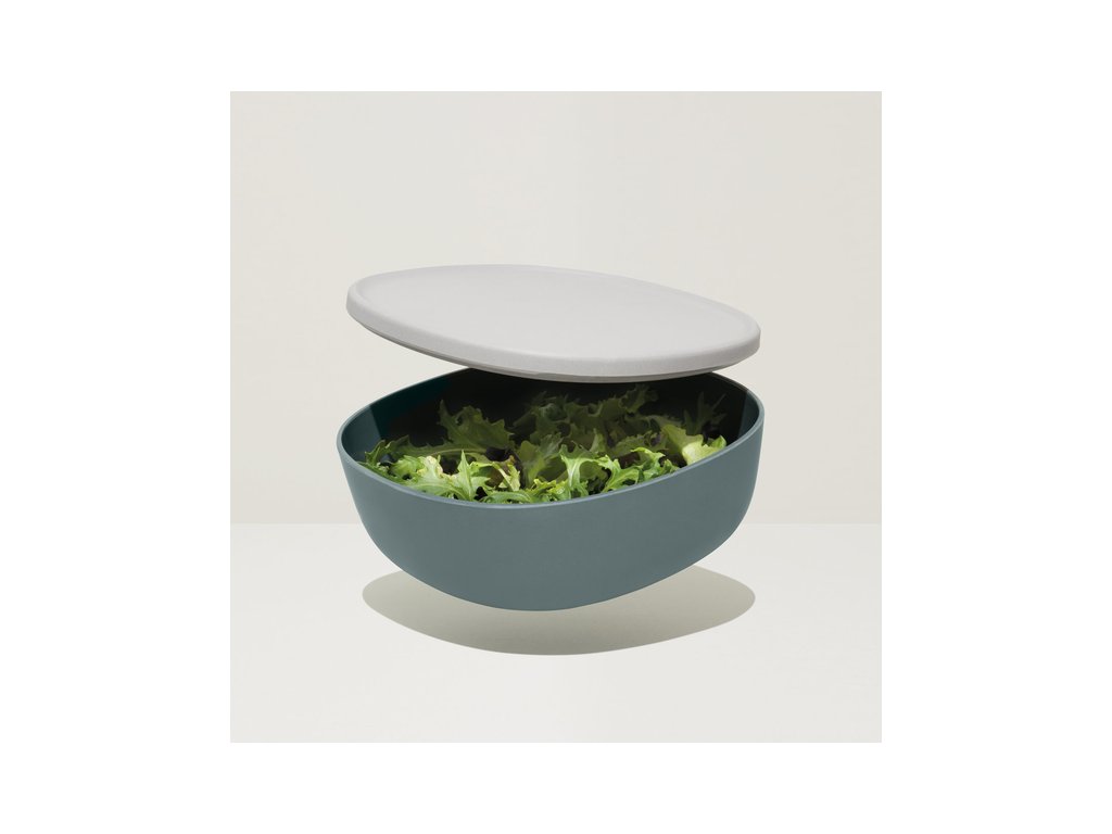 Miska má kontrastné biele veko, ktoré vám môže poslúžiť aj ako tanier.