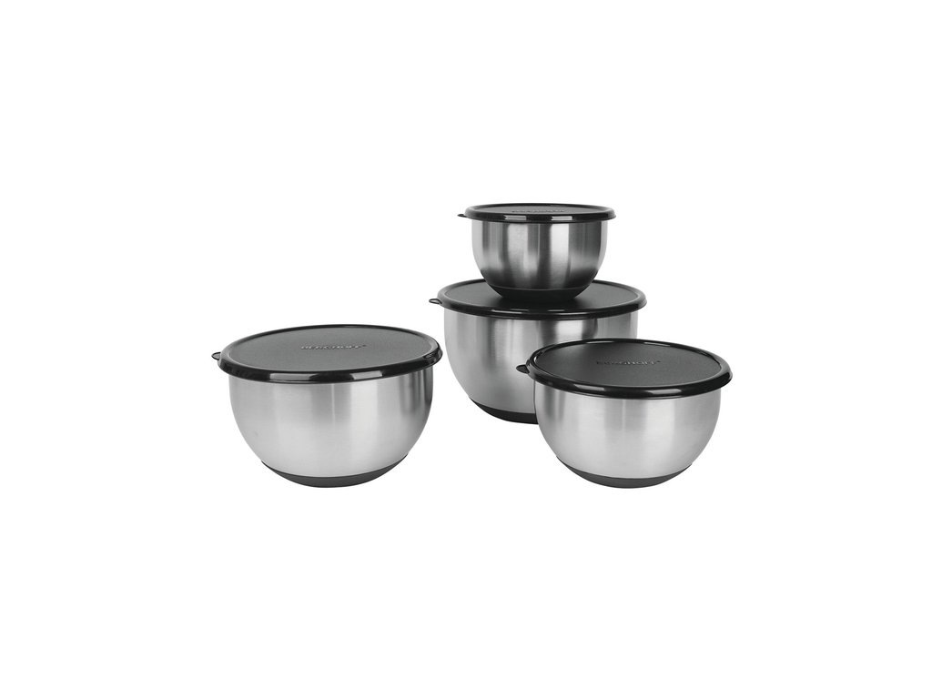 Naložili ste si mäso, urobil šalát, nátierku alebo cesto na chutný koláč? Znie to ako príprava na nedeľný obed a pritom vám chceme iba našepkať, že na to všetko vám poslúži sada týchto nerezových misiek. Všetky misky môžete zakryť čiernymi plastovými vekami, ktoré sú v balení.