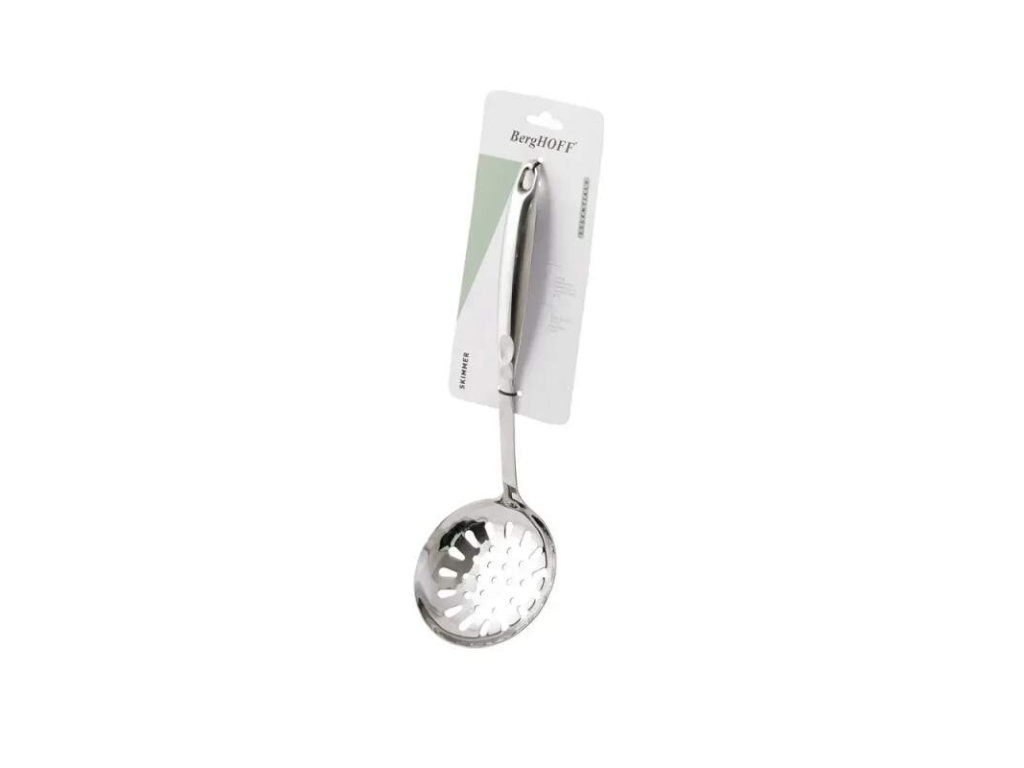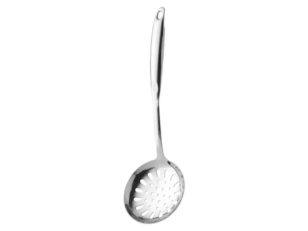 Tento nerezový skimmer vám pomôže ľahko naberať potraviny a odvádzať horúci olej alebo vriacu tekutinu. Ľahko sa skladuje vďaka praktickému otvoru na zavesenie.