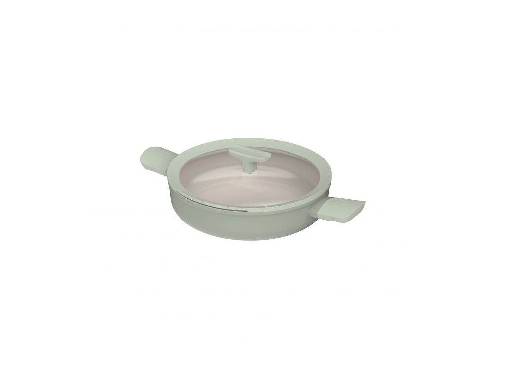 Keď uvažujete o tom, že by ste si na večeru pripravili chutné rizoto alebo opražili zemiaky, ale nechcete potom tráviť veky upratovaním, táto panvica na dusenie s vekom je dokonalým partnerom. Jeho telo zo 100% recyklovaného hliníka zaisťuje rýchlu a rovnomernú, energeticky efektívnu distribúciu tepla na akomkoľvek druhu varnej dosky vrátane indukcie. Je pokrytá vysokokvalitným, udržateľným a zdravým keramickým nepriľnavým povrchom, ktorý vám nielenže umožňuje variť s malým množstvom oleja alebo úplne bez oleja, ale tiež uľahčuje čistenie panvice. Pridajte k tomu držadlá a priehľadnú sklenenú pokrievku, ktorá je vybavená odtokovým otvorom pre ľahké cedenie a gombíkom s funkciou opierky lyžice, a máte riad, ktorý vám určite uľahčí život!