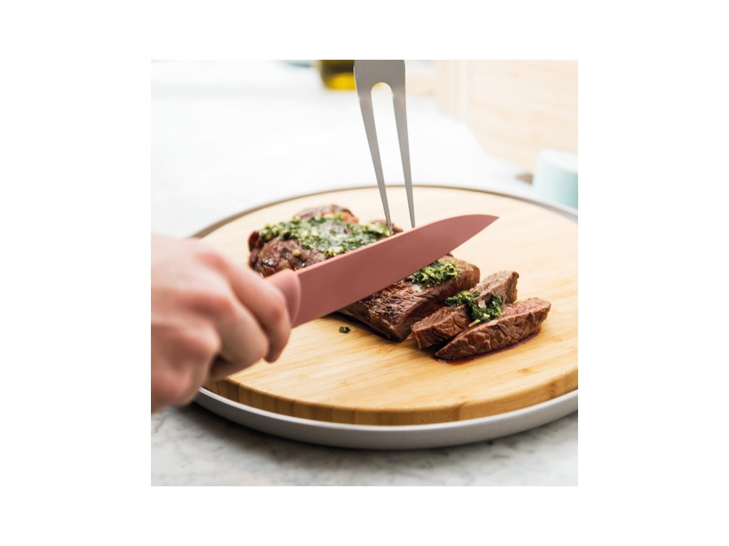 Nož na udeniny LEO v ružovom prevedení s dĺžkou 19 cm. Kvalitný oceľový nôž s non-stick povrchom z línie LEO od uznávaného dizajnéra PIETER ROEX. Ideálny nôž do každej kuchyne vhodný na denné používanie. Nôž je dokonale vyvážený a ergonomicky tvarovaný. Dodavaný s praktickým púzdrom pre dlhžiu životnosť noža a lepšie uskladnenie v každej domácnosti.