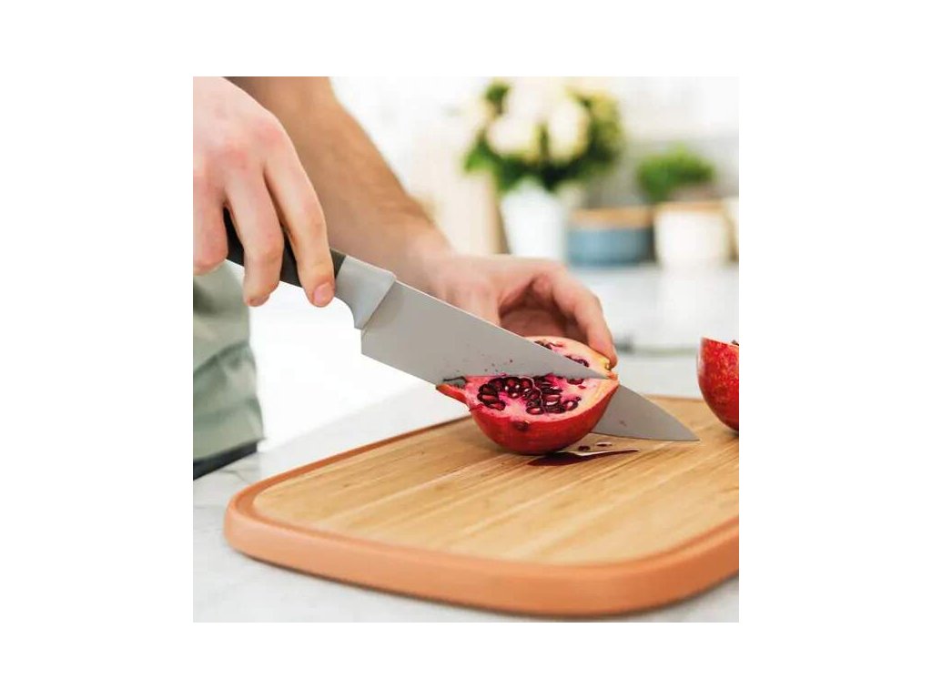 Kvalitný oceľový nôž s non-stick povrchom z línie LEO od uznávaného dizajnéra PIETER ROEX. Ideálny nôž do každej kuchyne vhodný na denné použiívanie. Nôž je dokonale vyvážený a ergonomicky tvarovaný. Dodavaný s praktickým púzdrom pre dlhžšiu životnosť noža a lepšie uskladnenie v každej domácnosti.