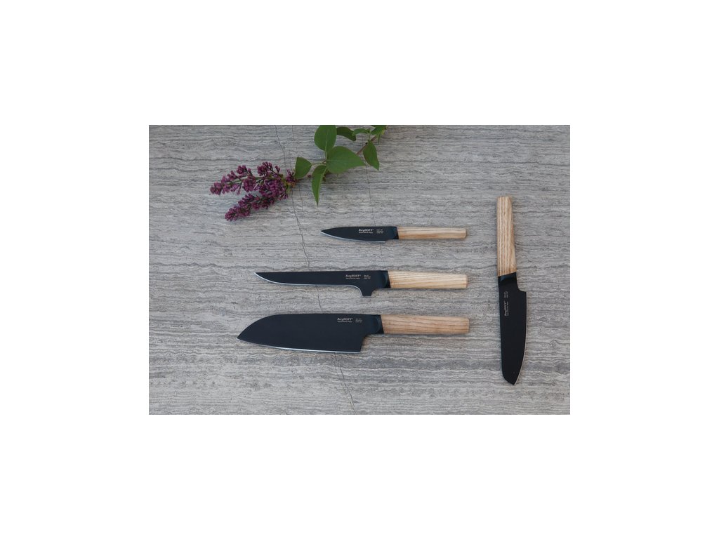 Kolekcia Ron ponúka celý rad univerzálnych nožov pre najbežnejšie rezacie práce v kuchyni. Tento nôž na lúpanie má kontrastnú rukoväť z jaseňového dreva a čepeľ z ocele s titánovým povlakom, ktorá umožňuje hladké rezanie.