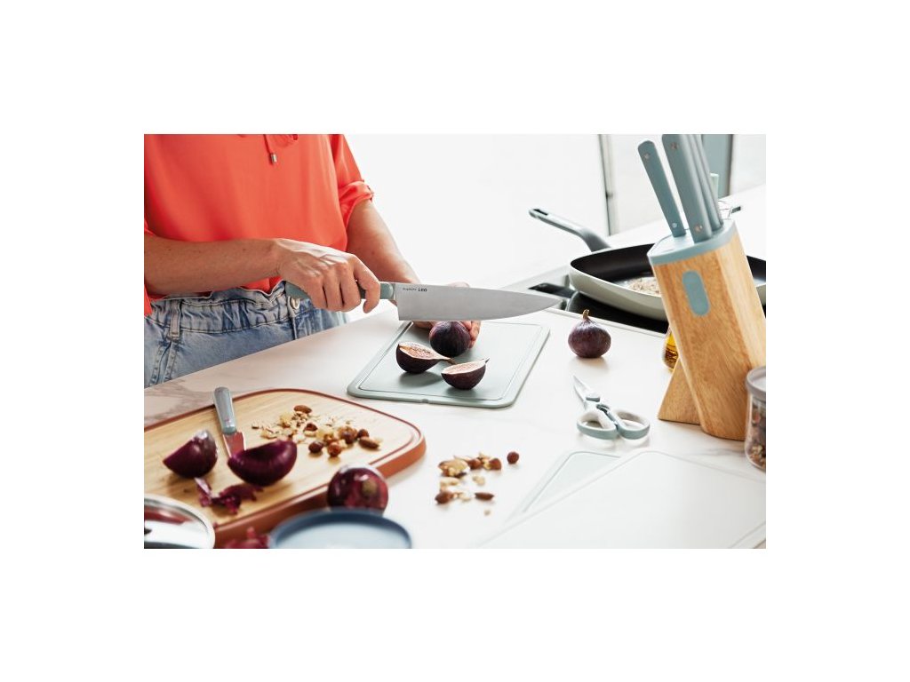 Kuchársky nôž je jedným z najdôležitejších nástrojov v každej kuchyni. Mäso, zelenina, hydina, ... tento kuchársky nôž to všetko nakrája a vďaka širokej ostrej čepeli je vhodný aj na ľahké štiepanie. Tento kuchársky nôž je vyrobený z vysoko kvalitnej nehrdzavejúcej ocele. Vyberte si z dvoch ladiacich farieb a rozžiarte svoju kuchyňu týmito lesklými nožmi.