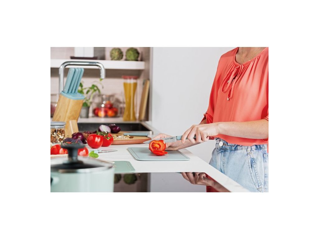 Medzi krájacím nožom a kuchárskym nožom je tento praktický nôž skutočným pomocníkom vo všetkých oblastiach. Od šúpania stredne veľkého ovocia a zeleniny až po krájanie citrusových plodov a krájanie sendvičov, ostrá čepeľ z nehrdzavejúcej ocele to všetko zvládne za okamih. Navyše rukoväť ponúka veľmi pohodlné a bezpečné uchopenie, takže môžete bezpečne krájať, krájať alebo krájať širokú škálu ingrediencií. Vyberte si z dvoch ladiacich farieb a rozžiarte svoju kuchyňu týmito lesklými nožmi.