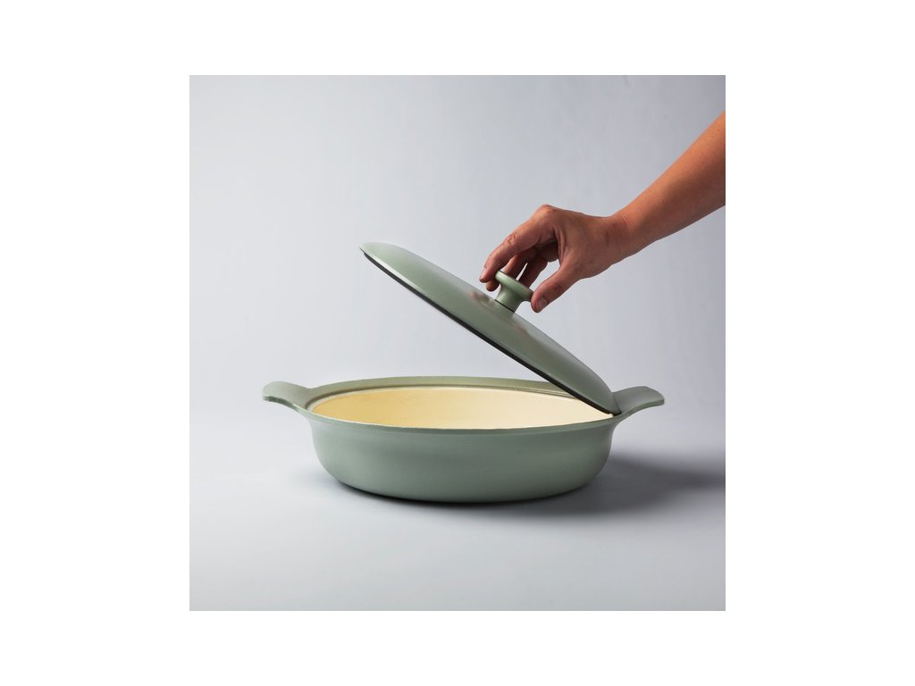 Panvica s pokrievkou zo série RON sa vyznačuje vynikajúcou schopnosťou viesťiť a udržať teplo. Je dokonaľou voľbou pre pomalé varenie a tak isto je vhodná na prípravu ako jedal na sporáku, tak na pečenie v rúre. Vđaka liatinovému telu a najnovšej generácie smaltovaného povrchu je skvelým pomocníkom pri varení a pečení zdravých jedál s použitím minimálneho množstva tuku.
