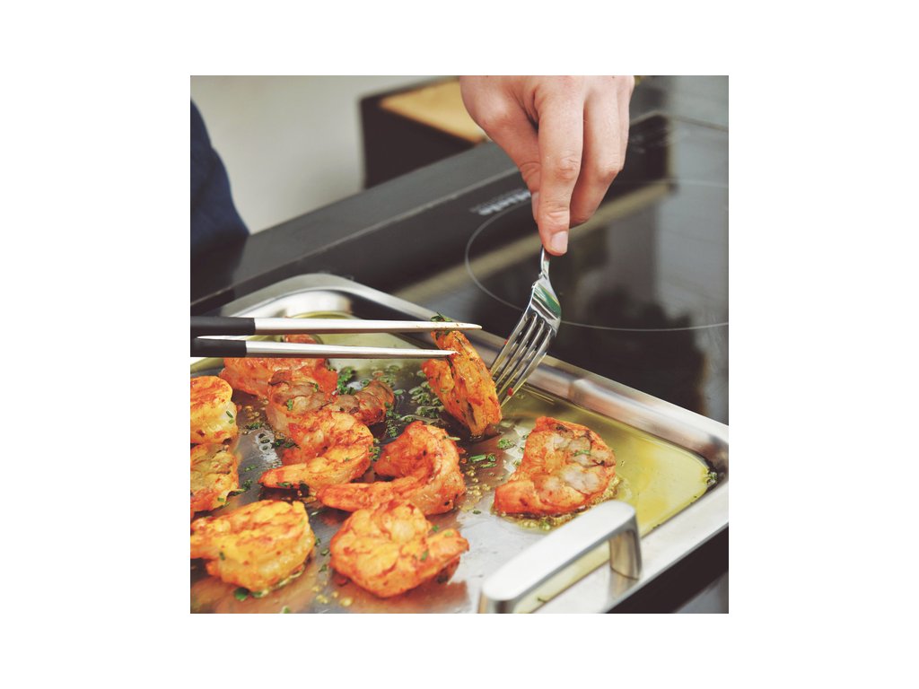 S panvicou Teppanyaki sa dostane vaše kuchárske umenie do vyššieho levelu. Opekanie a grilovanie bude zábavou a poskytne viac možnosti prípravy jedál a vytvoriť si tak pochúťky aj z inej krajiny. Panvica je z 5-vrstvového dna, ktoré rovnomerne šíri teplo a má robustné rukoväte, ktoré umožňujú bezpečný prenos na stôl. Táto panvica bola špeciálne navrhnutá pre indukčné varné dosky, ale dá sa použiť aj na iné varné dosky. Používanie panvice je ideálne na väčších plochách alebo spojených zónach v jednu, kde môžete ľahko položiť a využiť naplno výkon tejto panvice. Ryby, steaky, zelenina, vajcia a hlavne ázijské pokrmy sú ideálne na spracovanie v tejto panvici.