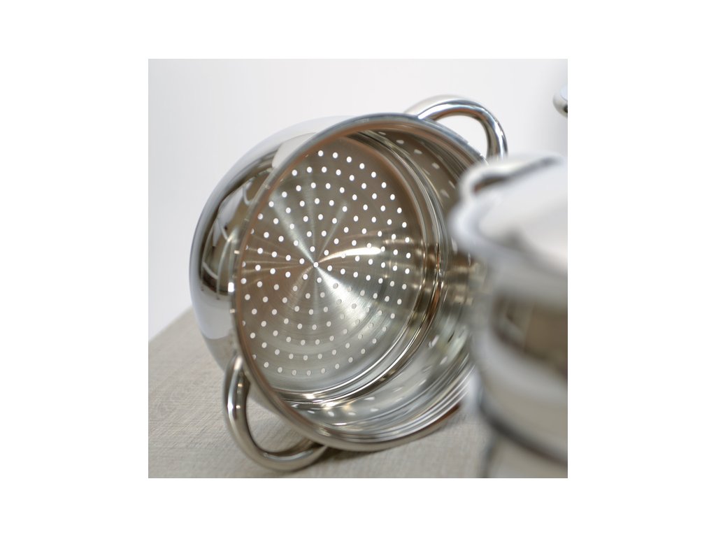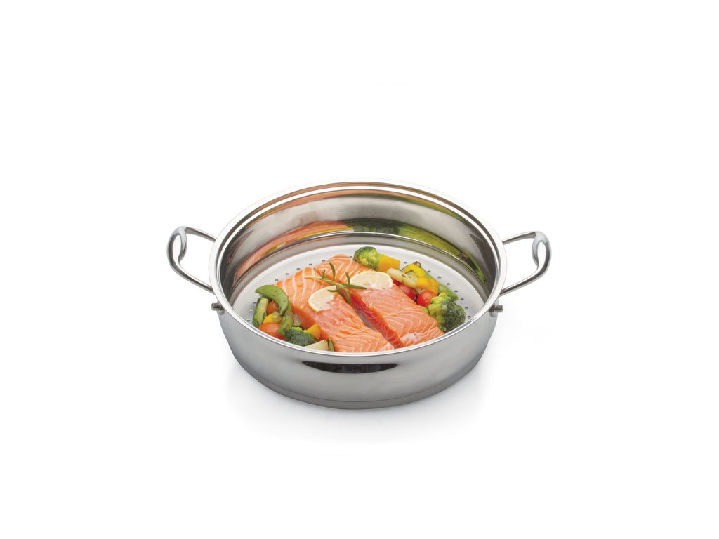 Varenie na pare patrí k jednému zo zdravších spôsobov varenia. Preferujú ho športovci, vyznávači zdravého životného štýlu a mnohé ázijské krajiny, od ktorých radi čerpáme rôzne recepty. Je z nehrdzavejúcej ocele a má dve elegantne tvarované rúčky. Nepoužívajte priamo na platne a kachle.