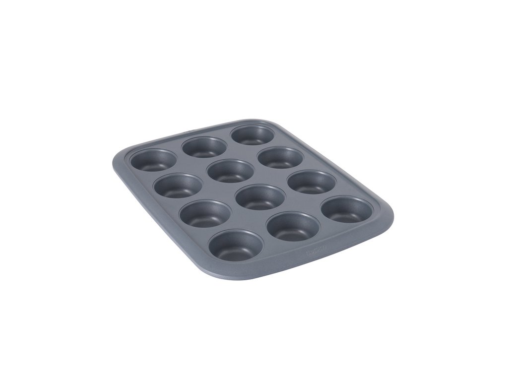 Plech na upečenie 12 sladučkých muffinov. Forma je z uhlíkovej ocele s nepriľnavým povrchom, ktorá sa postará o rovnomerné pečenie. Jednotlivé otvory stačí vymastiť, dať do polovice cesto a piecť. Po vychladení pôjdu muffiny pekne vybrať a pritom sa zachová ich celistvosť.