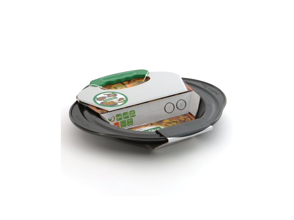 Guľatý plech na pečenie s krájačom od spoločnosti BergHOFF, ktorý je vyrobený z uhlíkovej ocele. Vonkajší povlak plechu je odolný proti vysokým teplotám , vnútorná časť je potiahnutá vrstvou Ferno Green, ktorá neobsahuje kyselinu PFOA, kadmium ani olovo. Plech môžete používať do teploty 250 ° C. S priloženým krájačom podľa čiar naznačených na plechu nakrájate Váš výtvor na presné kúsky. Krájač je vyrobený z TPR a vysoko odolného polystyrénu. Odporúčame ručné umývanie pekáča a nástroju na krájanie.