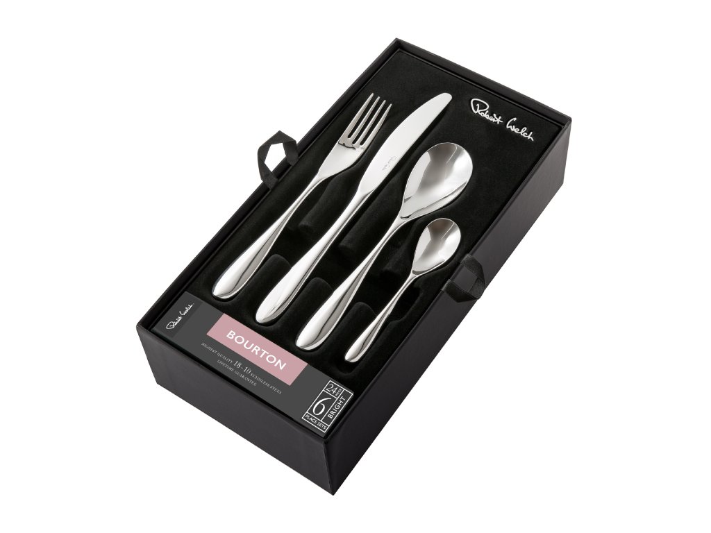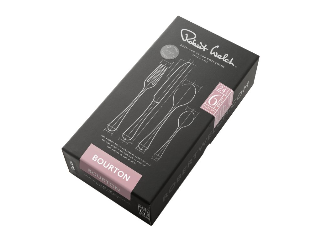 Elegantná sada príboru Robert Welch pre 6 osôb je z kvalitnej nehrdzavejúcej ocele. Čepele nožov sú vyrobené zo špeciálne kalenej nehrdzavejúcej ocele, aby poskytovali čo najlepšiu reznú hranu. Všimnite si v zúženej časti eliptický tvar, ktorý mú dáva punc jedinečnosti a elegancie. Zapúsobte na svojich hostí a položte správne príbor podľa priloženého návodu. Vedzte, že na nich urošíte veľký dojem. Príbor je balený v peknej krabičke a je vhodný aj ako darček na Vianoce, narodeniny alebo ku kolaudácii nového obydlia.