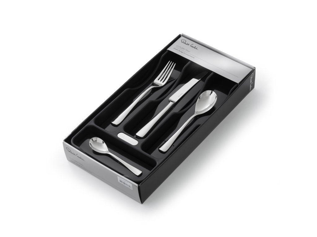 Majte poriadok vo svojom šuflíku a vložte doň tento praktický príborník. Má 4 priehradky na lyžice, nože, vidličky a malé čajové lyžičky. Pojme až 48 kusov príboru a je z pevného čierneho polypropylénu so saténovým povrchom. Rohy príborníka majú gumičky, ktoré mu nedovolia cestovať po celom šuflíku.