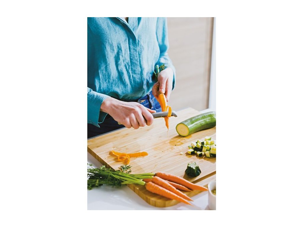 Vrecko zemiakov, kopa mrkvy alebo zväzok jabĺk, vďaka škrabke Leo vyrobenej z recyklovaného plastu ich budete mať olúpané za chvíľu. Čepeľ z nehrdzavejúcej ocele kĺže priamo cez šupky a vytvára tenký peeling, ktorý sa s nožom len tak nevyrovná. Konečne je zábavné šúpať ovocie a zeleninu vďaka živým farbám a ergonomickej rukoväti mäkkej na dotyk, ktorá vám padne do ruky ako uliata!