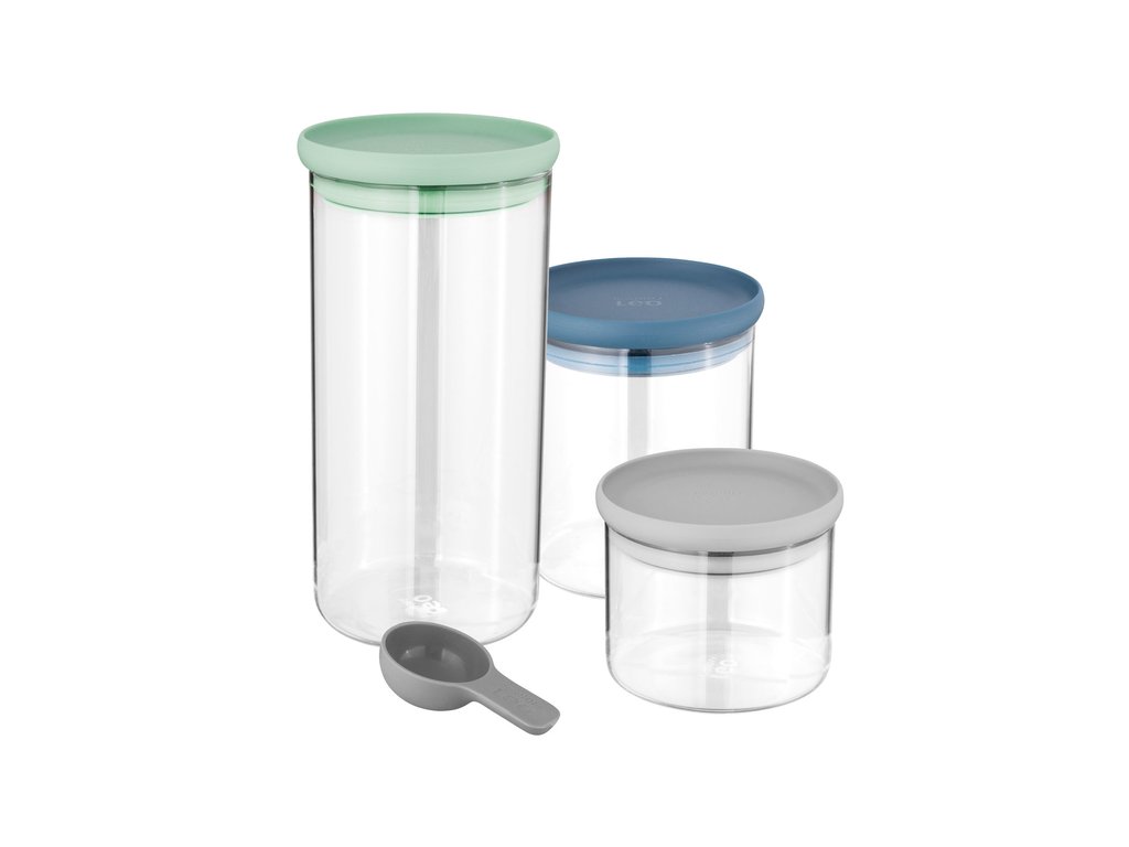 Sada nádob s kvalitným silikónovým tesnením na skladovanie rôznych potravín. Farebné veko dopomôže k uchovaniu čerstvosti potravín a zároveň pred molami alebo iným hmyzom. Dózy poslúžia aj na nákup v bezobalovom obchode, ktoré patria stále medzi najobľúbenejšie formy nakupovania. Nakúp&ite toľko, koľko potrebujete a ešte aj ušetríte našu prírodu pred zbytočným odpadom z obalu a vyhodených neskonzumovaných potravín. K dózam je pribalená aj naberačka, ktorá sa zíde na kávu, cukor alebo sypaný čaj.