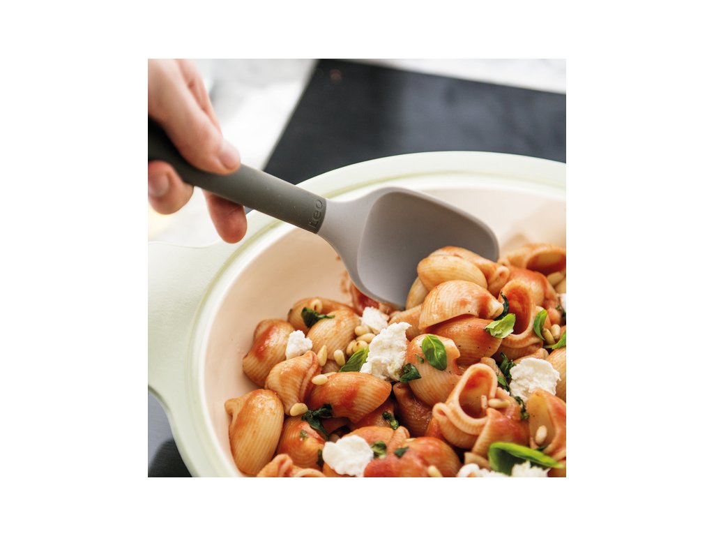 Silikonová lopatka na servírovanie LEO v šedom prevedení je skvelou pomôckou do každej kuchyne. Skvele sa hodi pri servirovaní vašich obôbených pokrmov. Vyznačuje sa vysokou kvalitou a sp&ľ;na všetky nároky na moderné a fukčné naradie v kuchyni. Silikonová kolekcia kuchynského náradia je dielom uznavaného dizajnéra P.Roex ktorý pravidelne zbiera ocenenia za prestížny dizajn. S kolekciou LEO sa stáva varenie potešením a zábavou.