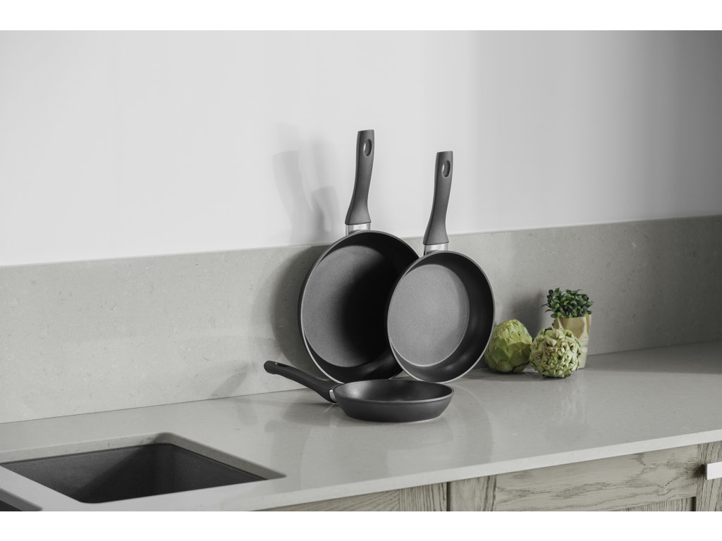 Vrátane 20 cm, 24 cm a 28 cm panvice vám táto súprava poskytuje to pravé na varenie akéhokoľvek druhu jedla. Mäso, ryby a zelenina budú upečené k dokonalosti, keď vyberiete tieto hliníkové panvice, ktoré sú vhodné na všetky varné dosky vrátane indukcie. Vyznačujú sa nielen kvalitným antiadhéznym povlakom, ktorý zaručuje ľahké uvoľnenie potravín a jednoduché čistenie, ale majú aj pohodlnú rukoväť, ktorá zaisťuje pohodlný a tepelne bezpečný úchop. Tomu hovoríme skutočný ,,musím mať,, v kuchyni!
