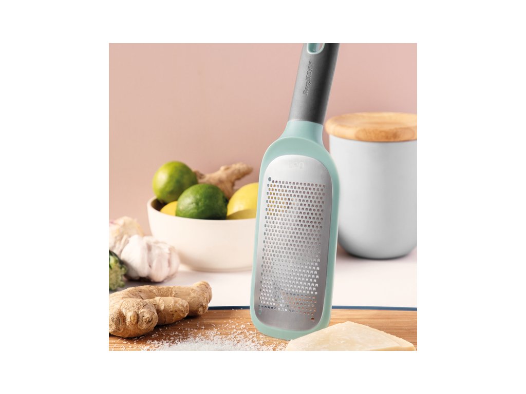 Strúhadlo, ktorým najemno nastrúhate tvrdé syry, cesnak, zázvor a kôrky citrusov. Pomôže vám na priame a pritom čerstvé dochutenie jedál. Stačí natiahnuť ruky nad tanier, panvicu či hrniec a strúhať. Lem aj rúčka strúhadla sú z mäkkého protišmykového polypropylénu a samotné strúhadlo je z nehrdzavejúcej ocele.