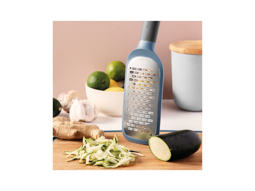 Strúhadlo, ktorým nastrúhate zeleninu aj ovocia na slíže. Tie môžete využiť do polievok, šalátov či cestovín. Pomôže vám na priame a pritom čerstvé doplnenie surovín do prirpavovaného pokrmu. Stačí natiahnuť ruky alebo oprieť strúhadlo o tanier a strúhať. Lem aj rúčka strúhadla sú z mäkkého protišmykového polypropylénu a samotné strúhadlo je z nehrdzavejúcej ocele. Ak práve strúhadlo nepotrebujete môžete naň nasadiť ochranný kryt, ktorý je súčasťou balenia.