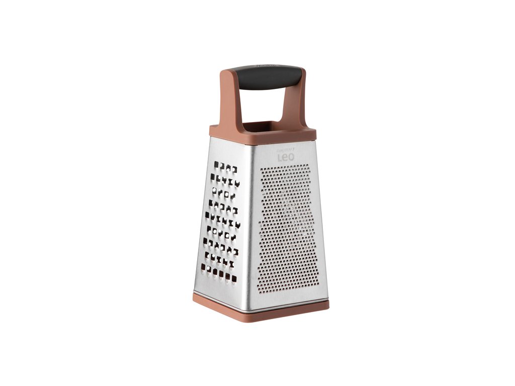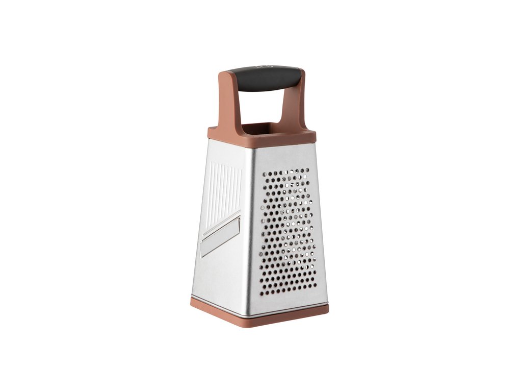 Strúhadlo, ktoré ponúka 4 strany rôznych plôch na strúhanie a krájanie zeleniny, ovocia či syrov. Hrubé plátkové krájanie poslúži na kapustu, kaleráb, uhorky a podobne. Hrubšie zúbky sa zídu napríklad na zemiaky ak by ste sa rozhodli robiť placky a aj zeleninu do polievky. Jemnejšia strana strúhadla vám pomôže pri strúhaní tvrdšieho syra alebo na jemný mrkvový šalát. Tá malá časť s malými bodkovanými dierkami je vhodná na strúhanie kôrky citrusov, ktoré dávame do rôznych dezertov aj napríklad dochutenie cestovín s feniklom. Telo strúhadla je z nehrdzavejúcej ocele a úchop so základňou sú z mäkkého protišmykového polypropylénu.