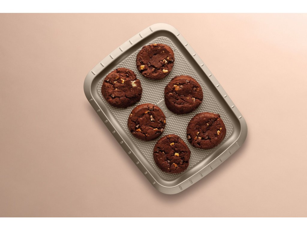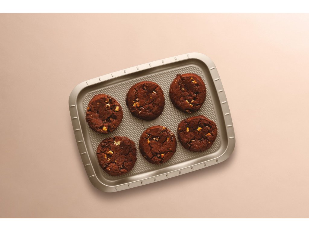 Sušienky, zákusky alebo iné lahodné pochúťky, na tomto nepriľnavom plechu ich ľahko upečiete k dokonalosti. Materiál uhlíkovej ocele s povrchom s diamantovou textúrou zaručuje rovnomerné pečenie, zatiaľ čo nepriľnavý povrch zaisťuje, že pečivo po vybratí z rúry ľahko vyberiete. To znamená žiadny pripečený neporiadok na plechu a čo je dôležitejšie, jednoduché čistenie!