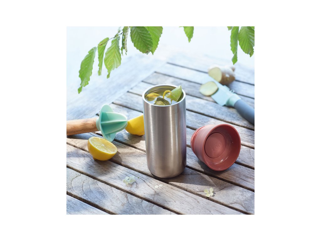 Nestíhate si vypiť svoju rannú kávičku alebo čaj? Vezmite si termohrnček, ktorý vám poslúži na cestách, výletoch či bežných prechádzkach. Zároveň môžete ušetriť prírodu a miesto take away kávy z obľúbenej kaviarne, dajte barmanovi do rúk váš hrnček. Hrnček má dvojitý plášť pre uchovanie teplého či studeného nápoja a silikónové viečko so špeciálnym stlačacím gombíkom pre rýchle a jednoduché pitie.