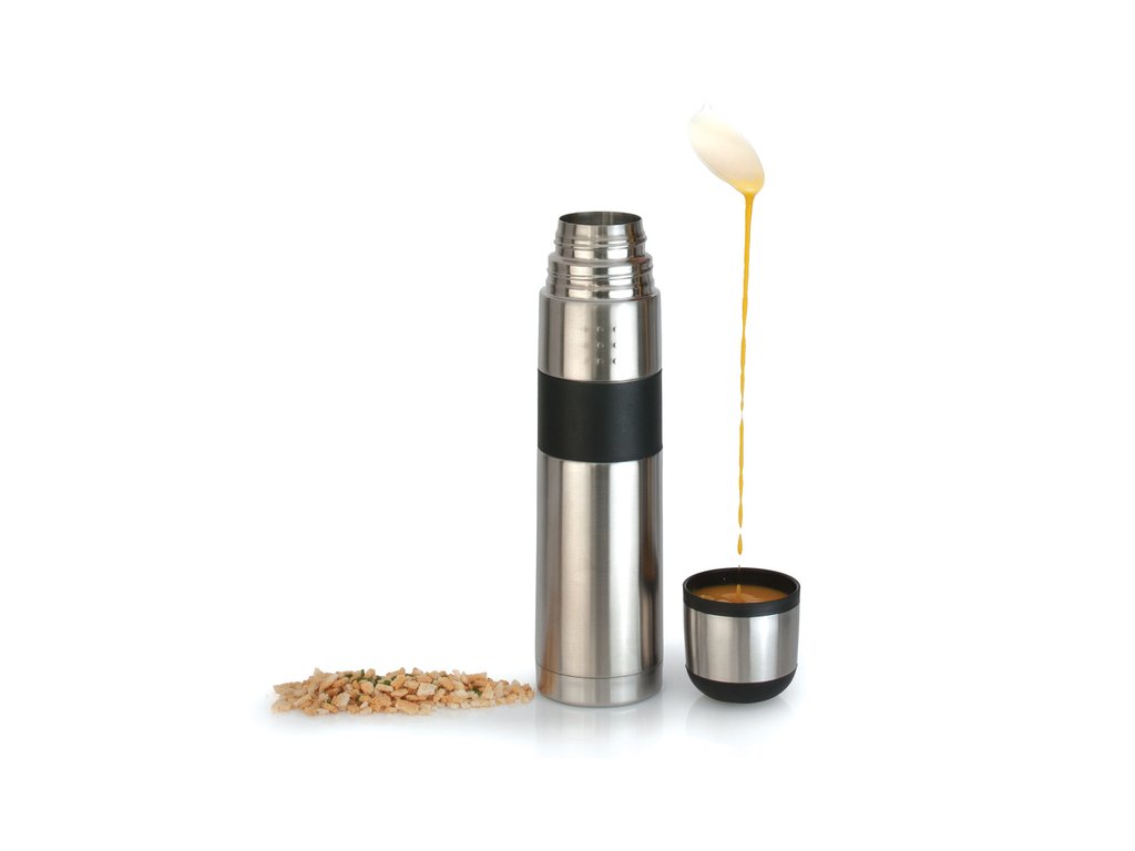 Termoska má veko, ktoré slúži aj ako pohár a gumený stredový pás, ktorý zabraňuje vykĺznutiu termosky z rúk. Telo termosky je z dvojitého plášťu a ten sa postará o dlhodobé uchovanie teploty nápoja.