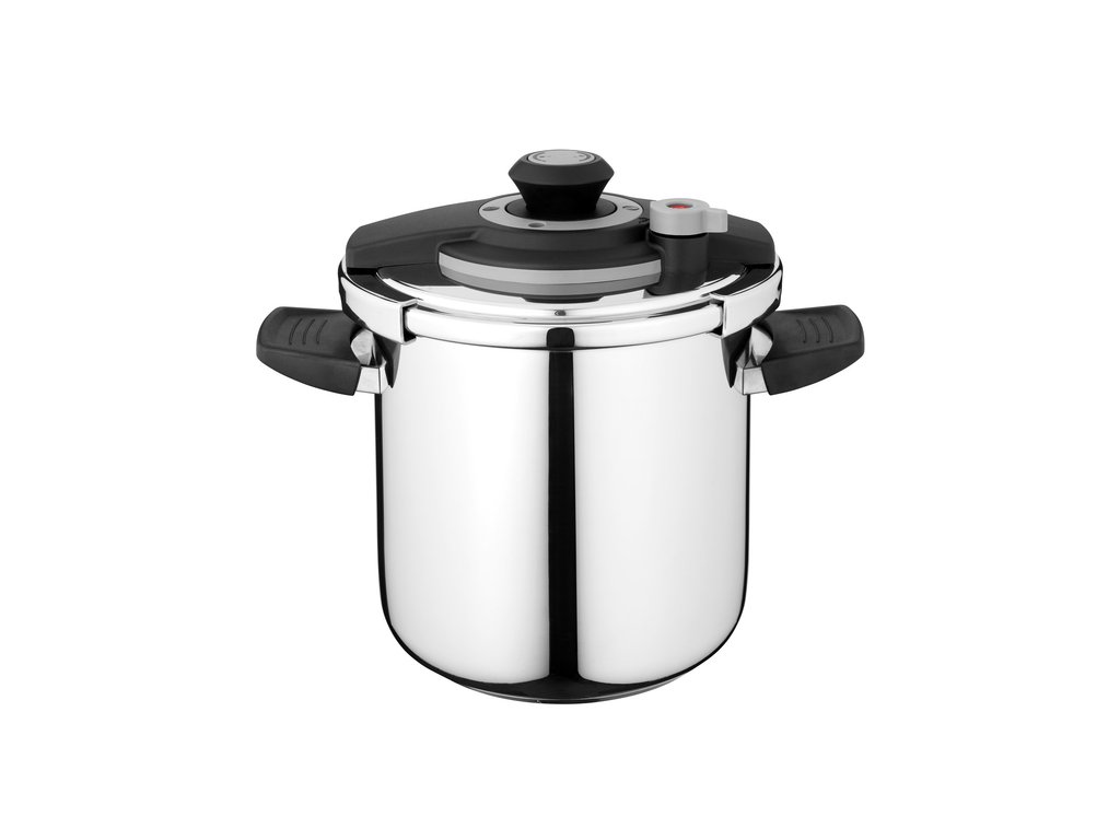 Urýchlite varenie až o 50% s týmto skvelým tlakovým hrncom. Má večne studené rukoväte pre ľahké uchopenie aj počas varenia, troj-vrstvové kapsulové dno a pevnú pokrievku s tlakovým poistným ventilom na automatické uvoľnenie pary. Je mimoriadne odolný a ľahko sa udržuje.