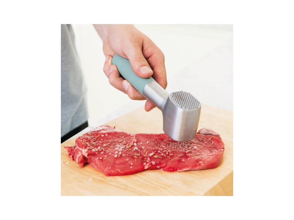 Ak ešte nemáte v kuchyni poriadny tĺčik, tak by ste mali siahnuť po takom, ktorý vám pomôže vylepšiť kvalitu mäsa predtým než ho budete grilovať či fritovať. Z jednej strany je zubkovaný a pomôže vám zjemniť mäso pri klepaní. Dokonca ním môžete drviť orechové škrupiny, bez toho aby sa vyšmykli. Hladká strana vám pomôže pri drvení cesnaku, na vyhladenie mäsa a aj na tvorbu hamburgrov či chorvátskej pleskavice. Tĺčik sa pohodlne drží za mäkkú rukoväť, ktorá vám len tak nevykĺzne z rúk. Tak čo? Je toto ten správny tĺčik?