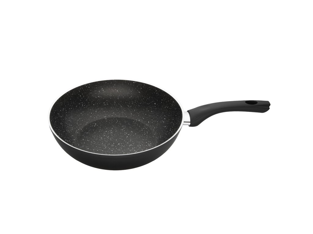 Poriadny wok z liateho hliníka a nepriľnavým keramickým povrchom, má povlak z tvrdého kameňa, ktorý je odolný voči vysokým teplotám a opotrebovaniu bez toho, aby sa vám prilepilo pripravované jedlo. Dlhá tvarovaná rukoväť je súčasťou woku a postará sa o pohodlné varenie.
